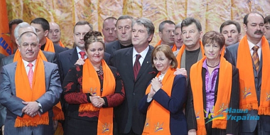 "Нашу Україну" за традицією зібрали в будинку культури КПІ. Надворі помаранчевими стягами розмахували студенти по 30 гривень, всередині делегатів з'їзду одягали в жовто–гарячі шалики.
