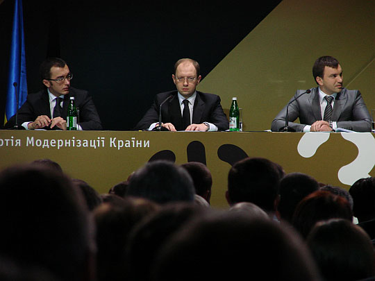За столом на сцені засідали троє "комісарів" – Яценюк і двоє найближчих до нього людей – Андрій Пишний по праву руку та Андрій Іванчук – по ліву. Все відповідно до ієрархії.