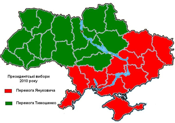 Електоральна географія 2010 року показала ту саму лінію поділу, що й 2004-го. Науковці стверджують, що ця лінія не проста і показують іншу карту – в атласі історії України за 9 клас. Це південний кордон Речі Посполитої та держави Хмельницького 17 століття.