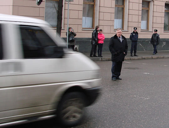 Останнім до "Українського дому" під’їхав посол України в Москві Костянтин Грищенко. Але охорона його не пустила на центральні двері, хоча ця людина має всі шанси очолити Міністерство закордонних справ за Януковича.