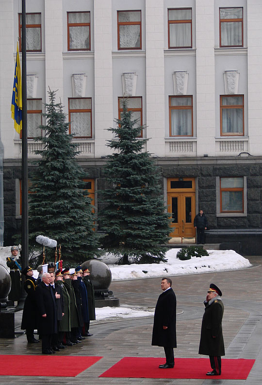 Після інавгурації Віктор Янукович прибув на Банкову, де прийняв рапорт від керівництва силових структур України. Ходою "в розвалочку" він обійшов подвійний ряд почесної варти та зайшов у секретаріат президента.