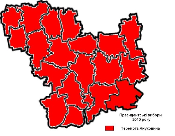 Більше того, в багатьох районах та областях відбувся певний відкат проукраїнських сил. Вибори 2010 року засвідчили регрес Херсонської області до рівня 59% Янукович проти 33% у Тимошенко та втрату проукраїнською Україною двох вищевказаних районів Миколаївської області (Янукович-Тимошенко: 61%-34%).