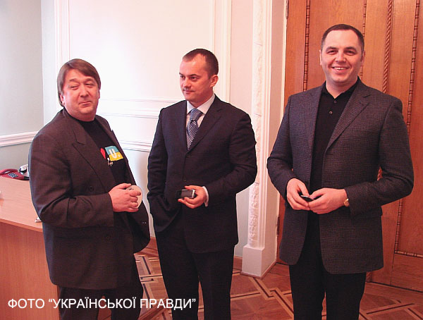 | Портнов и главные пиарщики Тимошенко: Виталий Чепинога (по центру) и Александр Абдуллин (слева) |