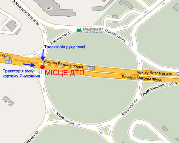 21 квітня президентська автоколона прямувала до Борисполя, звідки глава держави мав вилетіти до Харкова для підписання угоди з російським колегою Дмитром Медведєвим про перебування Чорноморського флоту до 2042 року.