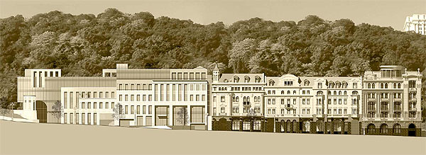 Тоді передбачалося не зносити "садибу Казанського", а здійснити її "розширення та реконструкцію". Замовником також було спільне підприємство "Сітко-Поділ-Київ", а розробником - Архітектурне бюро Юрія Бородкіна.