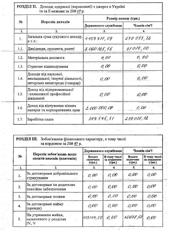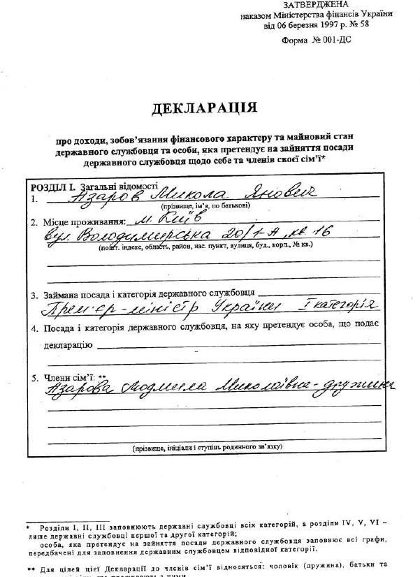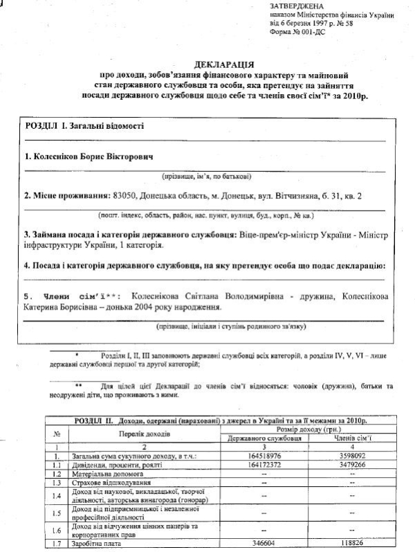 Декларації про доходи прем’єра Миколи Азарова, першого віце-прем'єра Андрія Клюєва, віце-прем'єра Бориса Колеснікова, віце-прем'єра Сергія Тігіпка, віце-прем'єра Віктора Тихонова.