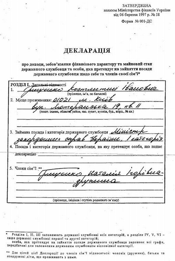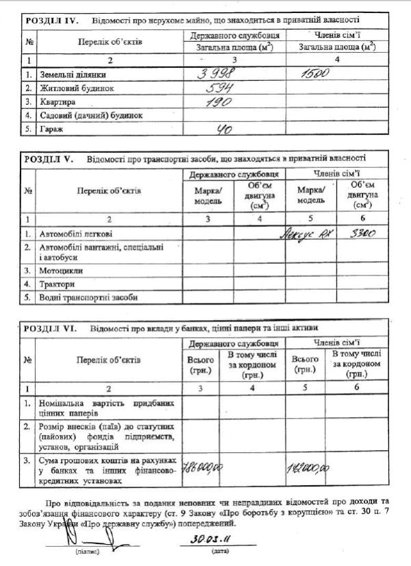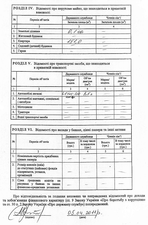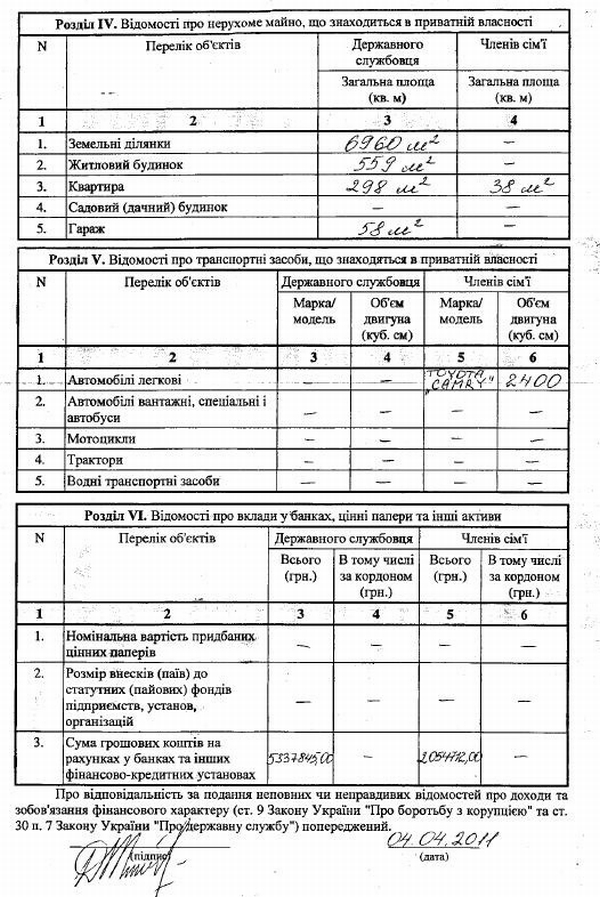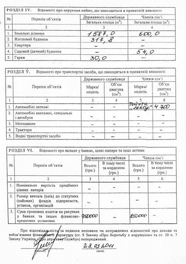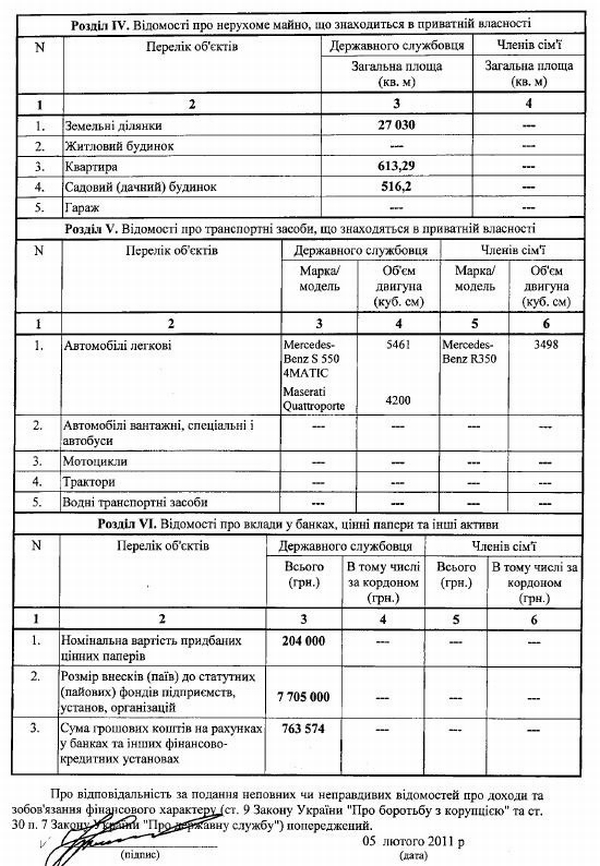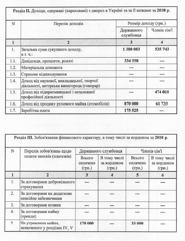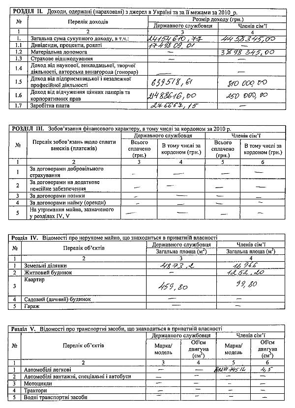 Також оприлюднені декларації міністра аграрної політики та продовольства Миколи Присяжнюка, міністра внутрішніх справ Анатолія Могильова, міністра енергетики та вугільної промисловості Юрій Бойко, міністра закордонних справ Костянтина Грищенка, міністра надзвичайних ситуацій Віктора Балоги, міністра оборони Михайла Єжеля та міністра освіти і науки, молоді та спорту Дмитра Табачника.