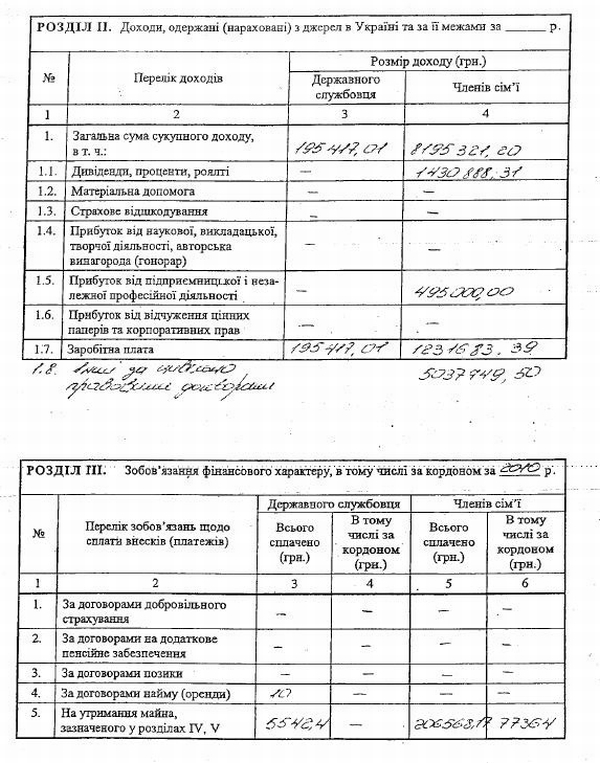 Крім того, про доходи відзвітували міністр культури Михайло Кулиняк, міністр фінансів Федір Ярошенко, міністр охорони здоров'я Ілля Ємець, міністр екології та природних ресурсів Микола Злочевський.