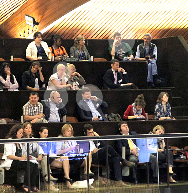Между тем председателю ПАСЕ пришлось дважды во время выступления президента воспользоваться звонком. Время от времени в зале возникал небольшой шум, точнее прорывалось легкое хихиканье оппозиционеров с балкона. В конце доклада Виктора Януковича поведение отдельных депутатов начало вызывать недоумение у посетителей из соседних лож. Раскрасневшиеся Арьев и Шишкина, успокоились, лишь когда председатель ПАСЕ попрощался с Виктором Януковичем.
