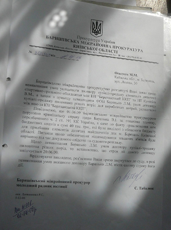 Але найголовніше - у вироку не було ні слова про компенсацію. Жодного штрафу. Кірєєв не зобов'язав екс-керівника повернути "Березанському ККП" гроші. Отже діти залишилися без гойдалок.