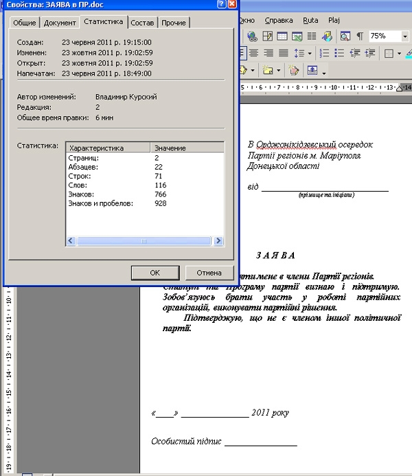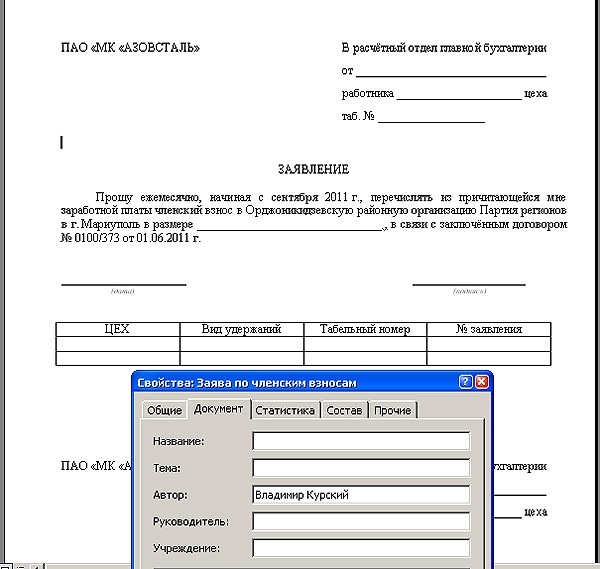 Файли з заявами, які передав УП працівник "Азовсталі", надруковані на комп’ютері місцевого депутата від Партії регіонів Володимира Курського, який раніше працював на комбінаті.