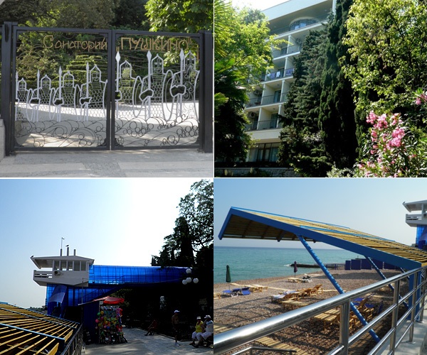 | На території Пушкіно суровий фейс-контроль. На 5 поверсі санаторію, кажуть, знаходяться апартаменти дружини Азарова. До пляжу санаторію веде спеціальний навісний місток. А відпочивальників на пляжі можна порахувати на пальцях рук |