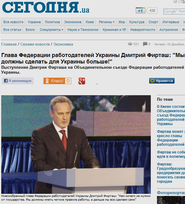 Последним таким случаем была публикация в газете речи Дмитрия Фирташа. В бумажном варианте она вышла под рекламной плашкой "Официально". На сайте этот же материал вышел без всяких маркировок, под шапкой "Газета "Сегодня" публикует полную речь Дмитрия Фирташа на съезде работодателей".
