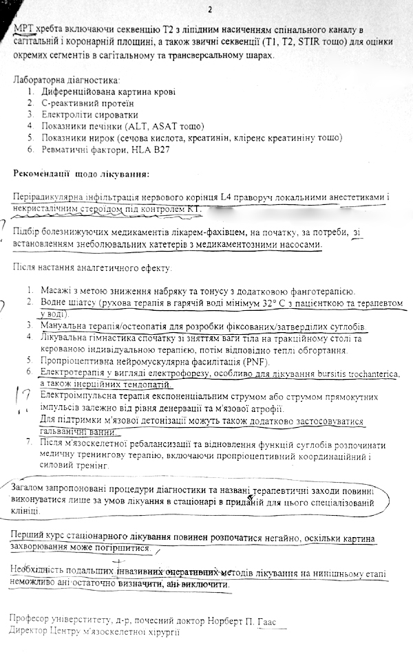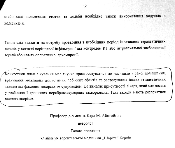 За словами Власенка, німецькі лікарі також зазначили, що на такій стадії захворювання пацієнта не можна лікувати в умовах навіть німецької в’язниці. Джерела "Української правди" передали редакції текст висновків лікарів.