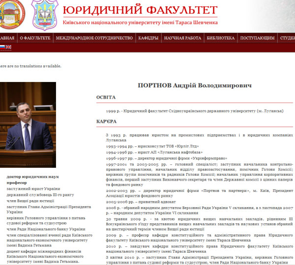 Першим, на кого натрапив автор, виявився Андрій Портнов – радник Президента України - керівник Головного управління Адміністрації Президента з питань судоустрою. Виявляється, Портнов поєднує основну роботу з виконанням обов’язків завідувача кафедри конституційного права юридичного факультету Київського університету імені Тараса Шевченка.