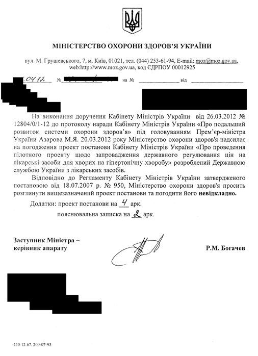 Погодившись допомогти, ми отримали копію відповідного листа МОЗ, датованого 17 квітня 2012 року.