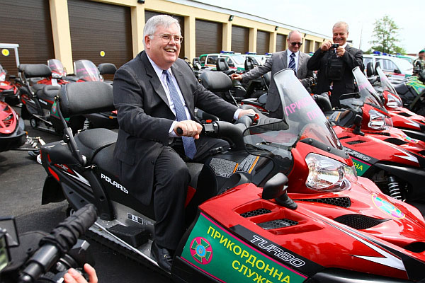 | Теффт на снігоході Polaris, переданому США і ЄС Державній прикордонній службі України, 8 травня 2012 року. Фото прес-служби посольства США |