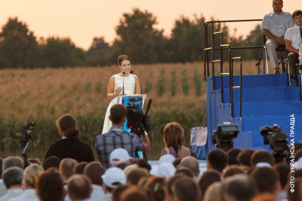 Він пообіцяв, що 4 роки гості зібрання зможуть гуляти тут вже не по голому полю, а по новому парку, який буде збудований тут після з'їзду. А "Україна вперед" звісно ж приведе до процвітання всієї України.