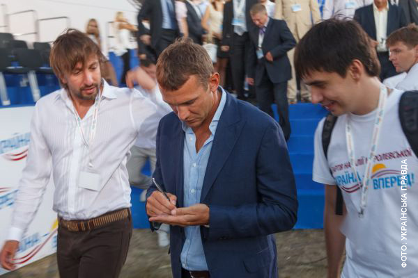 Але у суботу з'явився ще один привід відвідати цей з'їзд. Володар "Золотого м'яча" Андрій Шевченко вирішив повісити бутси на цвях і приєднатися до партії Королевської.