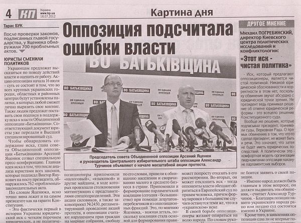 Деякі інші заголовки комуністичних "заказух" за липень: "КПУ: бесплатной медицине в Украине – быть" ("Сегодня", 3.07.12); Петр Симоненко: "Налог на роскошь – осознанная необходимость" ("Сегодня", 05.07.12); "Александр Голуб: Власть является частью кризиса, который стал результатом ее деятельности" ("КП", 07.07.12).