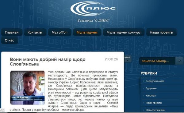 А ось у сюжеті інших телевізійників, із ТРК САТ, журналіст зазначає, що "обіцянки про встановлення нових вікон у школах та лікарняних закладах, ремонт доріг, вирішення водної проблеми Слов'янська … можна віднести не стільки до роботи організації "Наш регіон", скільки до тривалої роботи міста та керівництва області… Та й 10 мільйонів на будівництво пологового стали закладати, коли про громадську організацію "Наш регіон" у Слов'янську нічого й чутно не було".