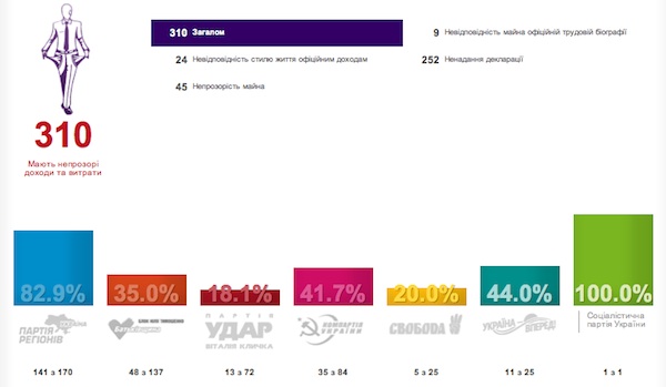 Показова декларація в цьому сенсі у кандидата в 133 окрузі міста Одеса Володимира Петрова, який ніби очолює громадську організацію "Журналісти проти депутатів". Організувавши діяльність "журналістів" проти депутатів, Петров за весь минулий рік не отримав ні копійки прибутку.