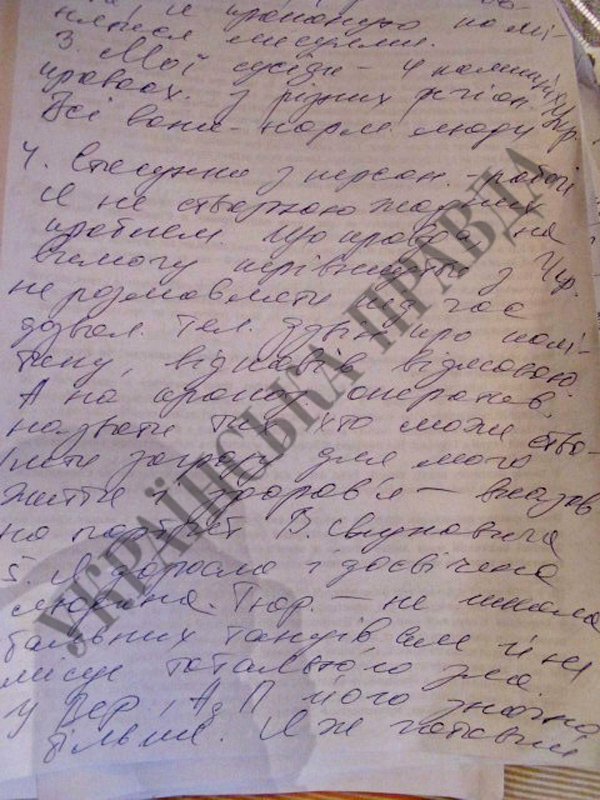 Фрагмент відповіді Юрія Луценка, написаний рукою дружини - Ірини