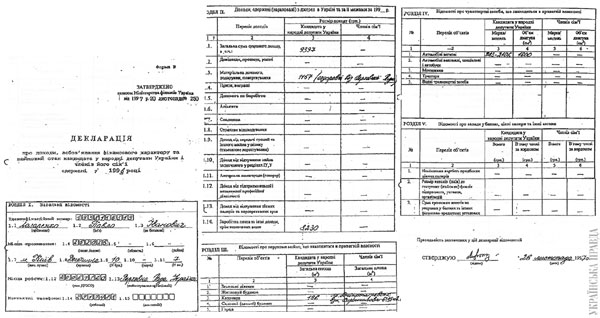Прокурор дорікнула Лазаренку, що він продовжував декларувати сміхотворні доходи як український чиновник - 9 тисяч 397 гривень за весь 1996 рік та шосту модель автомобіля "Жигулі".