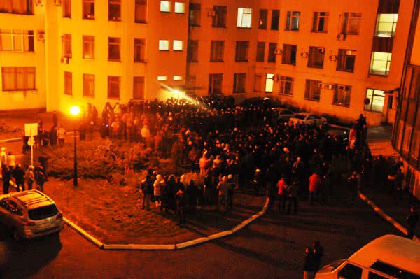 Підрахунок затягнувся десь на шість годин. Стомлені, змучені, голодні люди "підпирають" стіни як в приміщенні ОВК, так і в коридорі біля нього. Близько десятої вечора зчиняється ґвалт, дивимося у вікно - близько п'ятдесяти бійців "Беркуту" зганяють людей на проїжджу частину, оточили машину. Всі на "підриві" хочуть протистояти міліцейському "бєспрєдєлу" - журналісти і "свободівці" кинулися на вулицю.