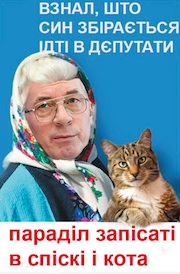 В очах українців плакатна бабуся стала втіленням політично свідомого виборця. Ідейним виявився і її кіт, причому з присмаком альтруїзму: зображений на фоні знамені України, він закликає: "Мені не потрібні ваші квадратні метри, краще проголосуйте за іншу партію".