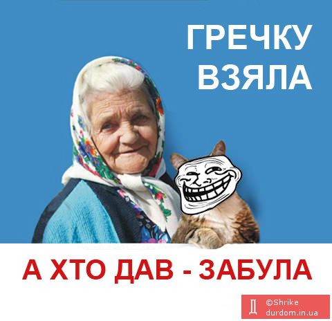 Та справжнім народним хітом виявилися фотожаби з бабусею й котом, прототипом яких став біл-борд із підписом "Взнала, що внук голосував за "Регіони", переписала хату на кота". Можна налічити близько 4 десятків переспівів цього зображення.