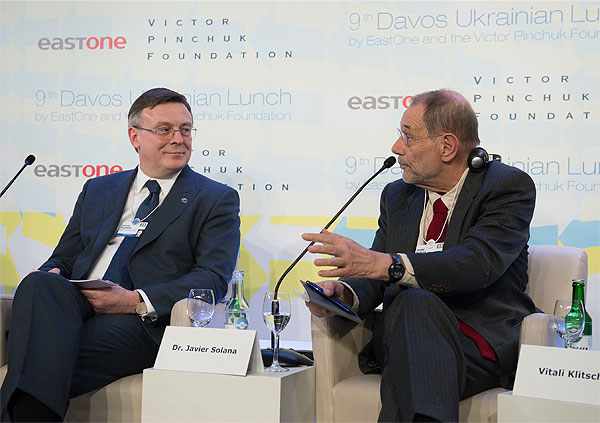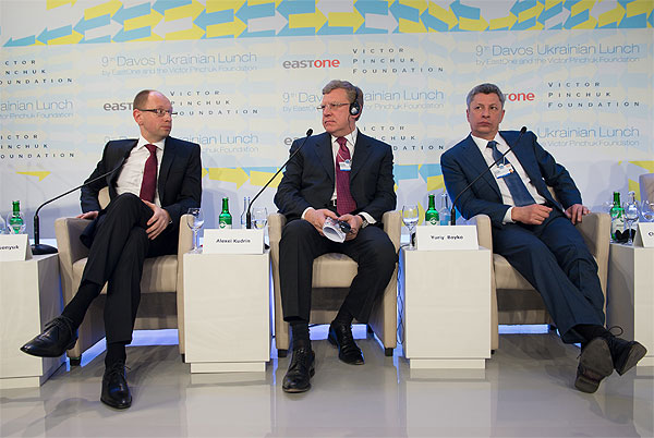 Опозицію були запрошені представляти Віталій Кличко та Арсеній Яценюк. Темою заходу стало банальне і завжди актуальне питання – куди рухатися Україні, на Схід чи на Захід. Оскільки тема жована-пережована, а Україна сьогодні в аутсайдерах цікавих новин, український обід на швейцарському курорті відвідали переважно самі українці, що прилетіли до Давоса, а також небайдужі росіяни.