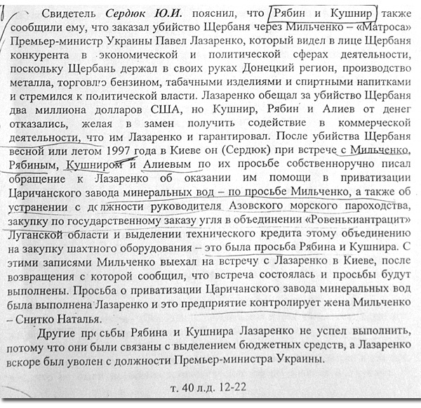 ДЕЛО ЩЕРБАНЯ: ПОКАЗАНИЯ СО СЛОВ МЕРТВОГО