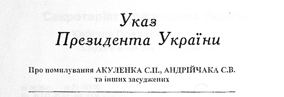"Украинская правда" впервые публикует указ президента Леонида Кучмы от 19 июня 2003 года, которым он помиловал Юрия Сердюка.