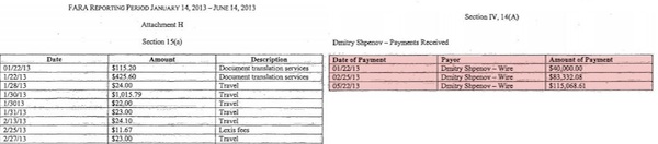 За підсумками першого півріччя Arnall Golden Gregory відзвітувала про понад 30 зустрічей в інтересах клієнта. Серед іншого вони вказали про розмову зі спікером Палати представників республіканцем Джо Бенером. За свої послуги Arnall Golden Gregory отримала від Шпенова 240 тисяч доларів у трьох траншах за січень, лютий та травень цього року.