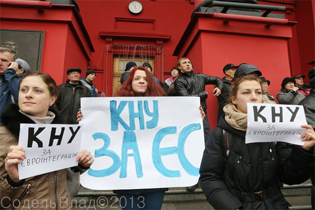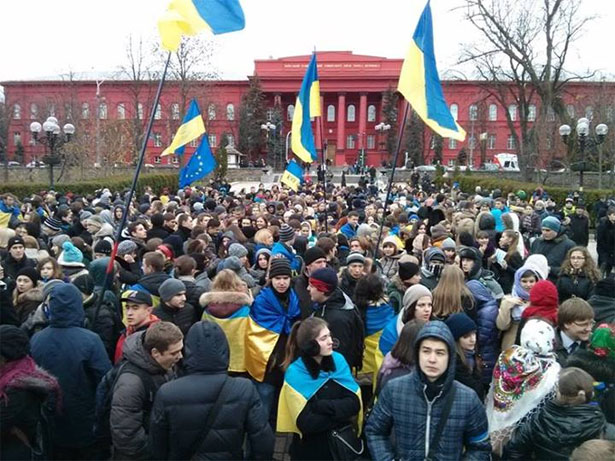 1500 студентів КНУ приєднались до страйкуючих студентів Могилянки. Вони об'єдналися біля пам'ятника Шевченку і планують вирушити на Європейську площу, де триває безтрокова акція протесту проти згортання євроінтеграції. Також до них приєдналися близько 50 студентів Львівського національного університету, які автобусом дісталися до Києва.