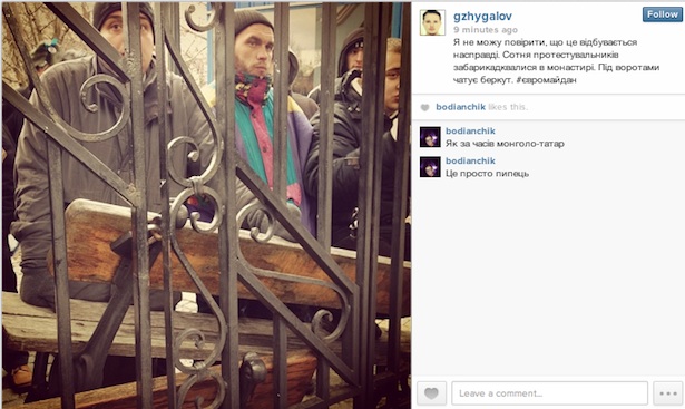 Нарешті дозвонився до ректора Духовної Академії, що на території Михайлівського монастиря, де велика кількість протестувальників врятувалася від штурму #євромайдан. Владика Епіфаній стверджує, що міліція арештовує і вдягає наручники всім, хто якимось чином виходить за межі монастиря. Просить допомоги депутатів, преси, духовенства і мирян!!! ПРОХАННЯ ПОШИРЮВАТИ!!!