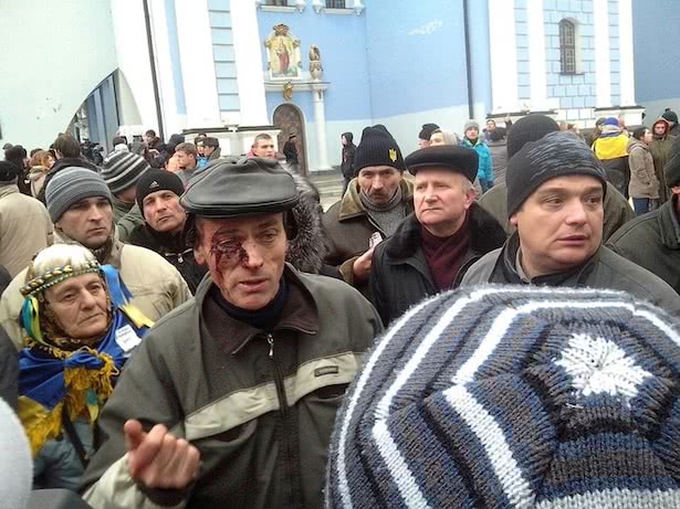 Чоловік біля Михайлівсбкого собору розповідає страшні речі про нічне місиво. Таке враження, що беркутам включили зелене світло. Вони трощили всіх підряд, не гребуючи жінками,старими і навітб звичайними прохожими. — в Євромайдан. Творимо історію!