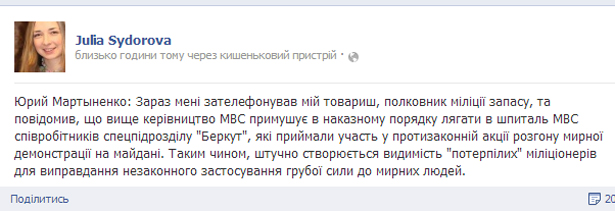 Очевидиця штурму євромайдану, яка була в самому пеклі, під монументом Незалежності, повідомила мені таку інформацію: