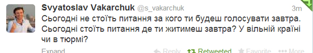Сьогодні не стоїть питання за кого ти будеш голосувати завтра. Сьогодні стоїть питання де ти житимеш завтра? У вільній країні чи в тюрмі?