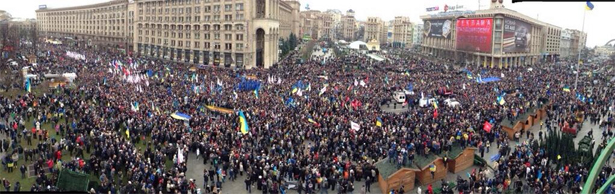 У неділю люди зібралися на всеукраїнське віче на підтримку Євроінтеграції та проти діючої влади. Величезна кількість людей зумовлена кривавим розгоном студентського євромайдана в ніч з п’ятниці на суботу.