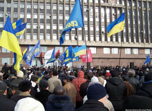 15 грудня близько 9 ранку в Житомирі невідомі закидали камінням і порізали колеса в мікроавтобусі "Опель", який віз 8 осіб на народне віче на Київ.