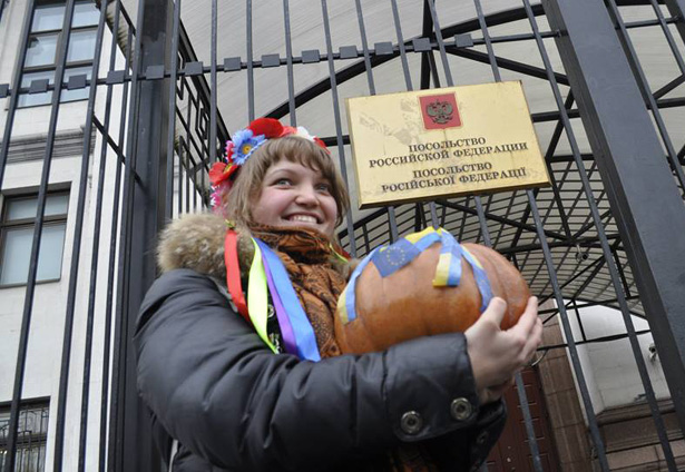 Сьогодні, 17 грудня, українські дівчата піднесли Президентові РФ Володимиру Путіну гарбуза. Близько 50 дівчат провели пікетування Посольства РФ, заспівали там народних пісень та залишили там свою однозначну відмову вступати до Митного Союзу - гарбуз, об'вязаний єврострічками.