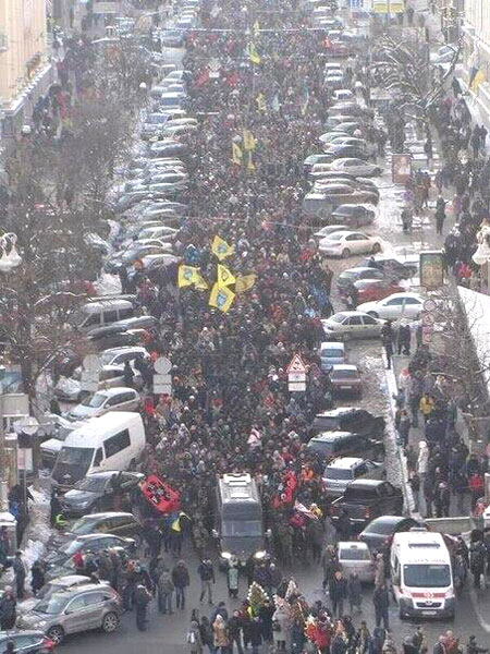 Кількатисячна колона прямує до Аскольдової могили, щоб вшанувати пам'ять Героїв Крут.
