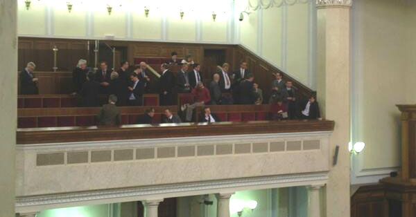 Фракція Партії регіонів залишає сесійну залу Верховної Ради і вирушає на нараду.