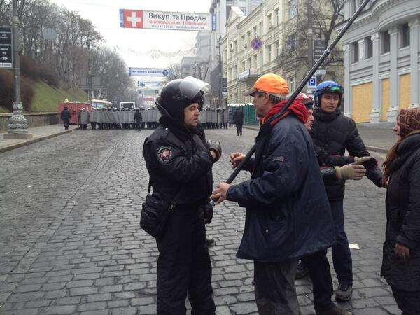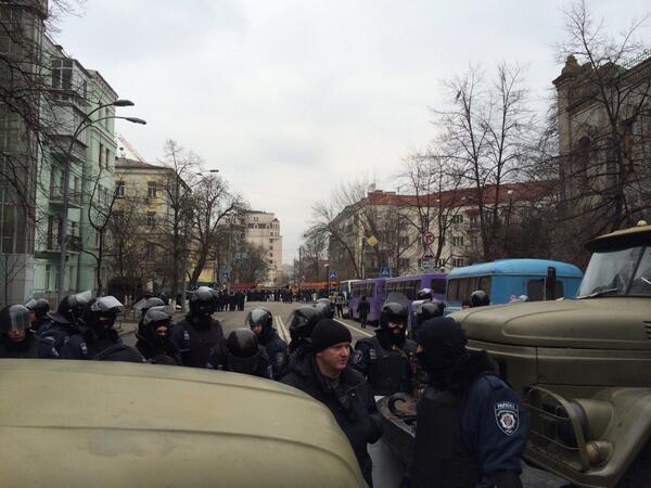 Кабмин, ВР комитеты и гостиница Киев эвакуировали. Со стороны Арсенальной на Грушевского идет Беркут и люди с палками. Много!