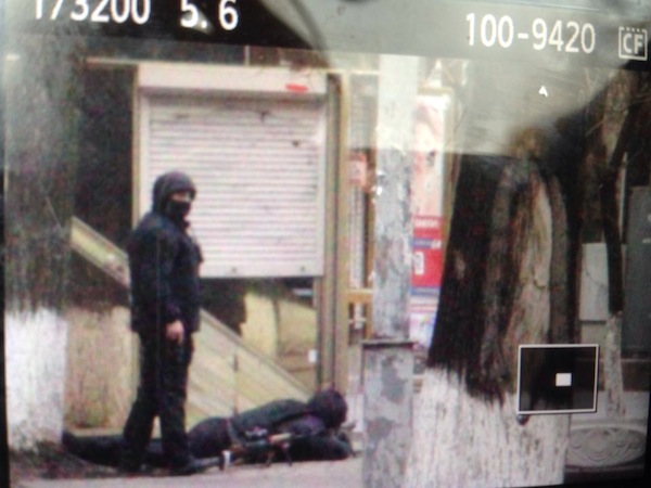 на Майдані біля готелю "Козацький"-7 трупів...усі чоловіки...самооборона каже,що їх застрелили снайпери ментів...6-ть вбито пораненнями в шию