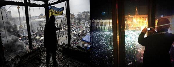 #ЄвроМайдан Обстріл першого поверху готелю України / повідомляє Skyba Oleksandra: Близько 10:00 розпочався обстріл першого поверху готелю Україна, коли туди наблизились мітингувальники. В холі перебувають ранені, медики роблять перевязки. Не вистачає шприців. Сили Самооборони знайшли снайперів на 10 поверсі готелю.