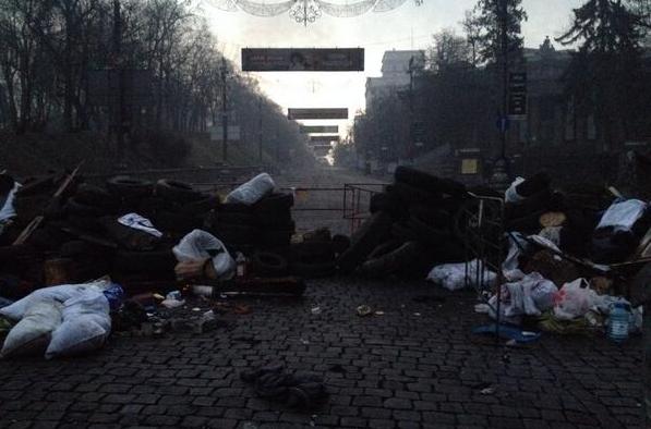 Утро на #Грушевського . Милиция не атаковала. Да и некому, кажется. Ну, и #євромайдан не атаковал.