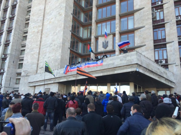 | 6 апреля сепаратисты В Донецке захватили ОГА и потребовали отставки Таруты. Фото с ФБ